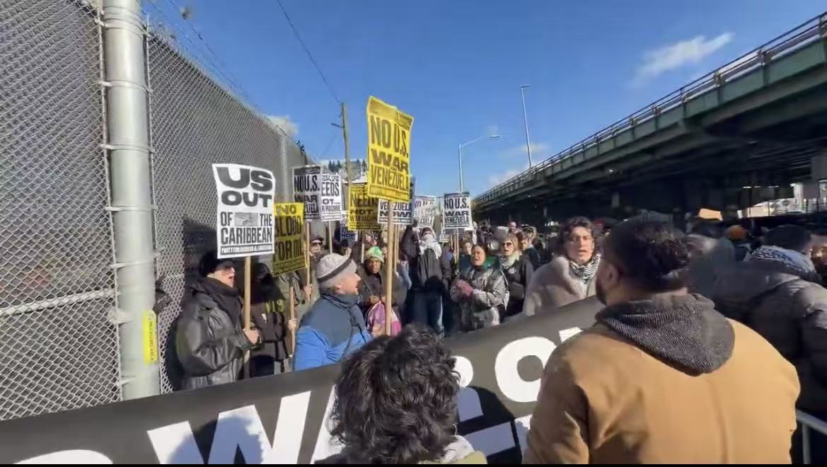 民众在美国纽约举行抗议,反对美对委内瑞拉军事行动